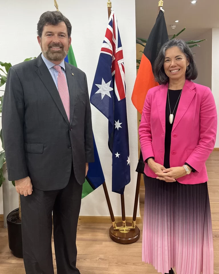 Lisboa – fevereiro de 2024. O Cônsul Geral Honorário de Sua Majestade o Reino de Tonga em Portugal, Anthony Bailey, efectuou uma visita de cortesia a Sua Excelência Indra McCormick, Embaixadora da Commonwealth da Austrália na República Portuguesa, sediada em Lisboa desde 2022.