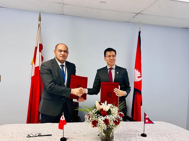 New York – March 2024. The Kingdom of Tonga formalised the establishment of her diplomatic relations with the Federal Democratic Republic of Nepal in the presence of their respective Permanent Representatives to the United Nations, Ambassador Tone of Tonga and Ambassador Thapa of Nepal on 1 March 2024.
