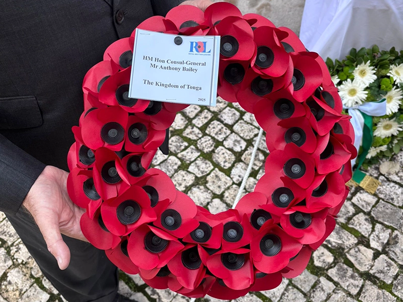 On 9 November 2025, His Majesty’s Honorary Consul-General of the Kingdom of Tonga to the Portuguese Republic, Mr Anthony Bailey, joined fellow heads of diplomatic missions and representatives of the Armed Forces in paying tribute to the fallen at the annual Remembrance Sunday Service, organised by the Royal British Legion – Portugal and Atlantic Islands Branch, and held at St George’s Anglican Church, Lisbon.