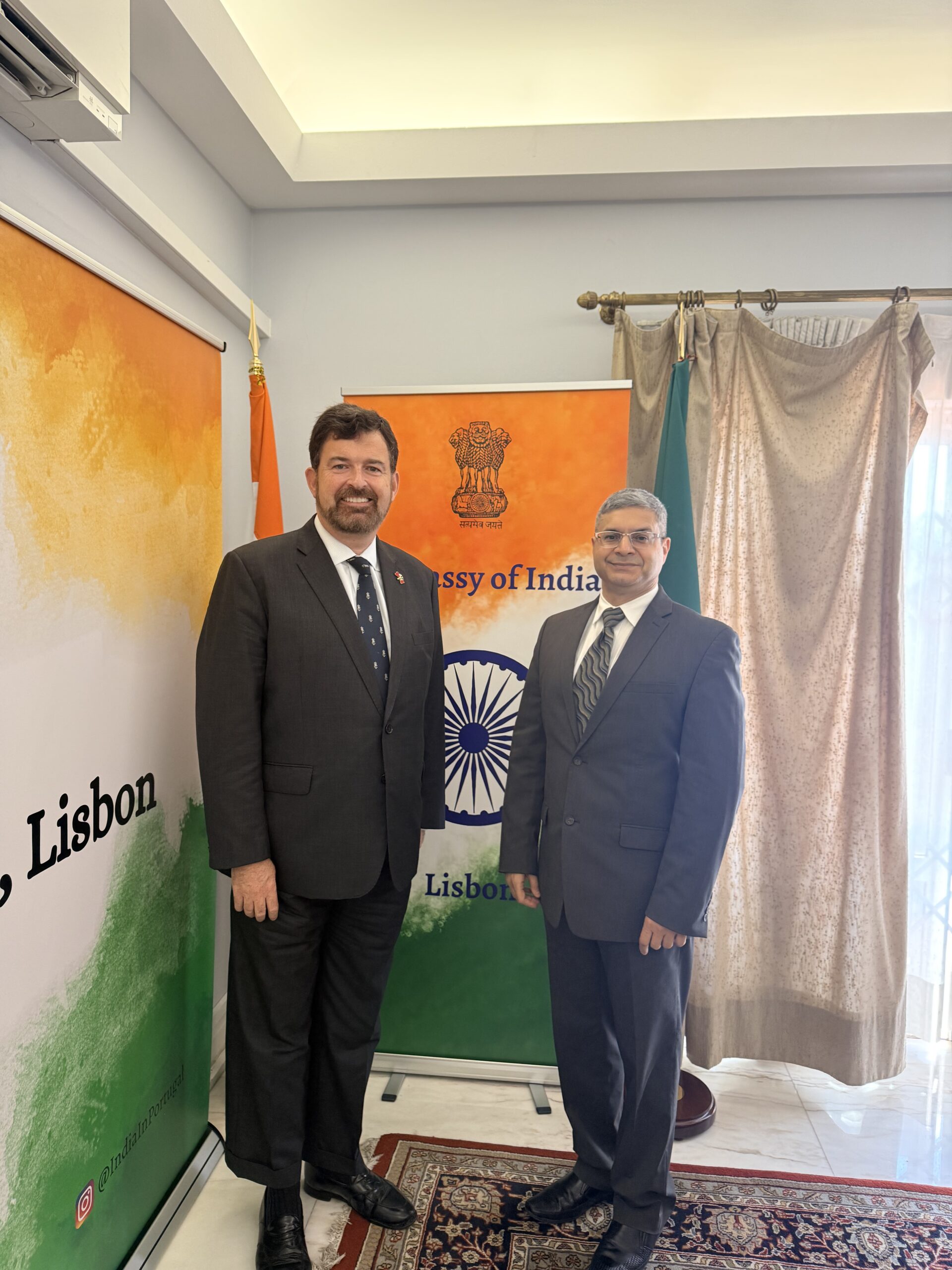 Lisbon – 9 October 2025. The Honorary Consul-General of the Kingdom of Tonga to the Portuguese Republic, Mr Anthony Bailey, paid a courtesy visit to HE Mr Puneet R. Kundal, Ambassador of the Republic of India to the Portuguese Republic, at the Residence of the Ambassador in Lisbon.